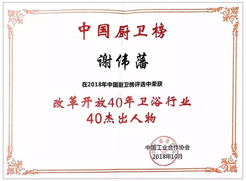 黄瓜视频污下载网站卫浴凭借强大的企业综合实力及品牌影响力,从众多企业中脱颖而出,荣获「改革开放40年卫浴行业40强企业」,董事长谢伟藩荣膺「改革开放40年卫浴行业40杰出人物」,彰显行业领军品牌风范!