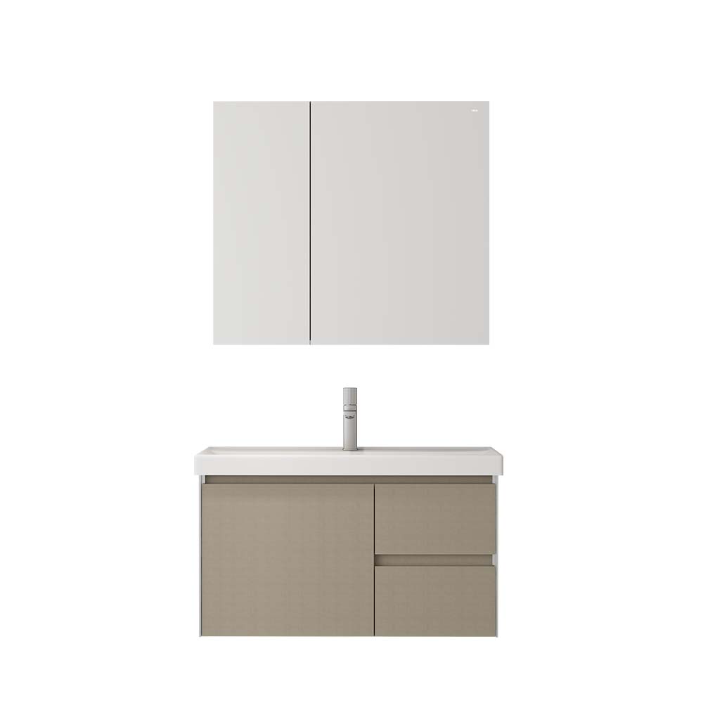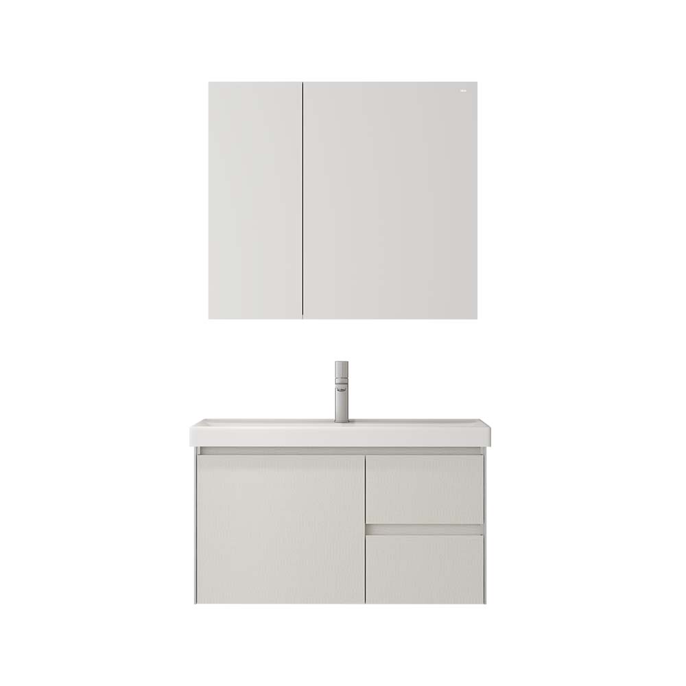 - 合理分区收纳:镜箱+双抽加单开门主柜收纳